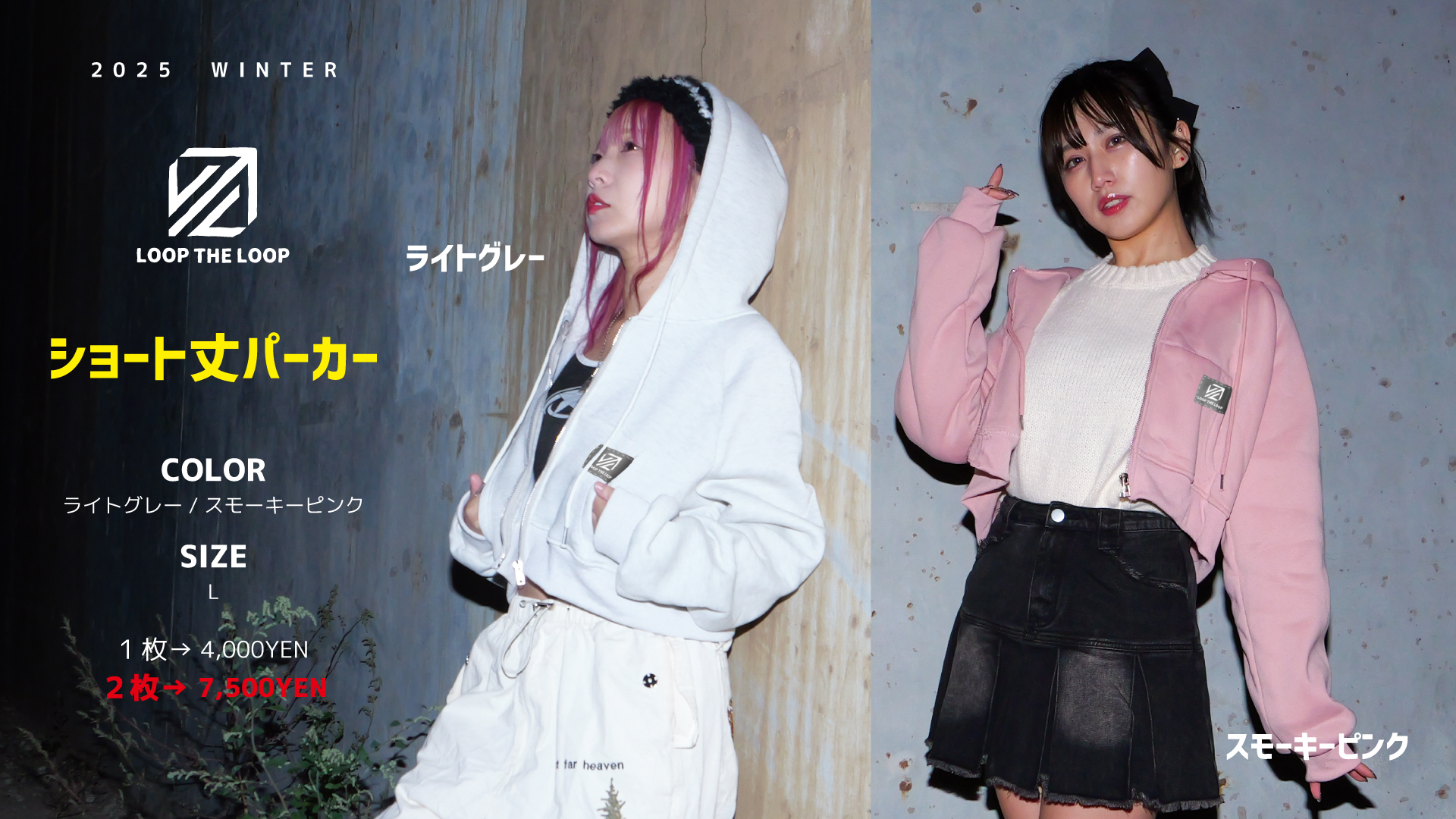 ・裏起毛 https://shop.loop-the-loop.com/items/125305135 カラー:ライトグレー / スモーキーピンク サイズ:L 値段:4,000円2枚→7,500円(先行のみ) 購入時、クーポンコード入力で割引! クーポンコードは下記よりご確認ください。 Xのフォロー&RPした方限定でクーポンコードの入力ができます。 購入時にXのIDが必要になります。 https://x.com/looptheloop82/status/1991496170586435710