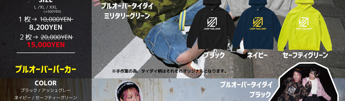LOOP THE LOOP パーカー2025 winter 先行販売情報 2025.11.22 22:00~2025.11.25 23:59 https://shop.loop-the-loop.com/ 先行販売のみ、名刺ケースプレゼント! 合計金額15,000円ごとにキャッププレゼント! ●タイダイプルオーバーパーカー