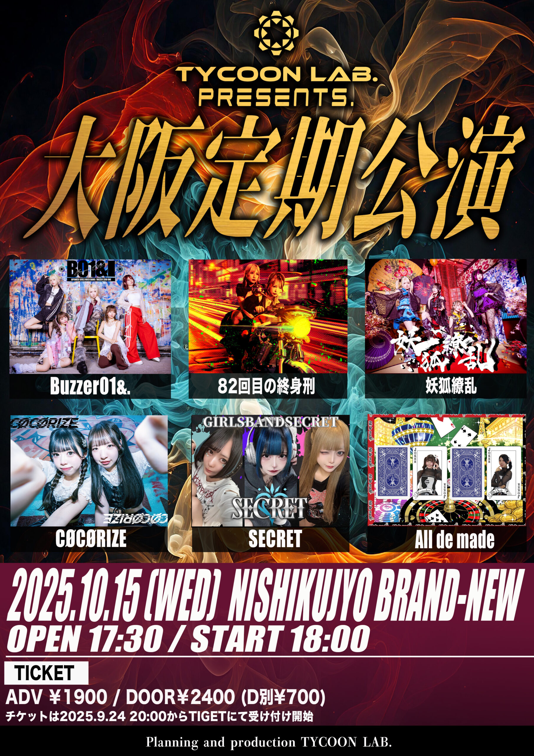 82刑定期公演! ●日程: 2025/10/15(水) 西九条BRAND-NEW TYCOON LAB. presents.大阪定期公演 【CAST】 ・Buzzer01&. ・82回目の終身刑 ・SECRET […]