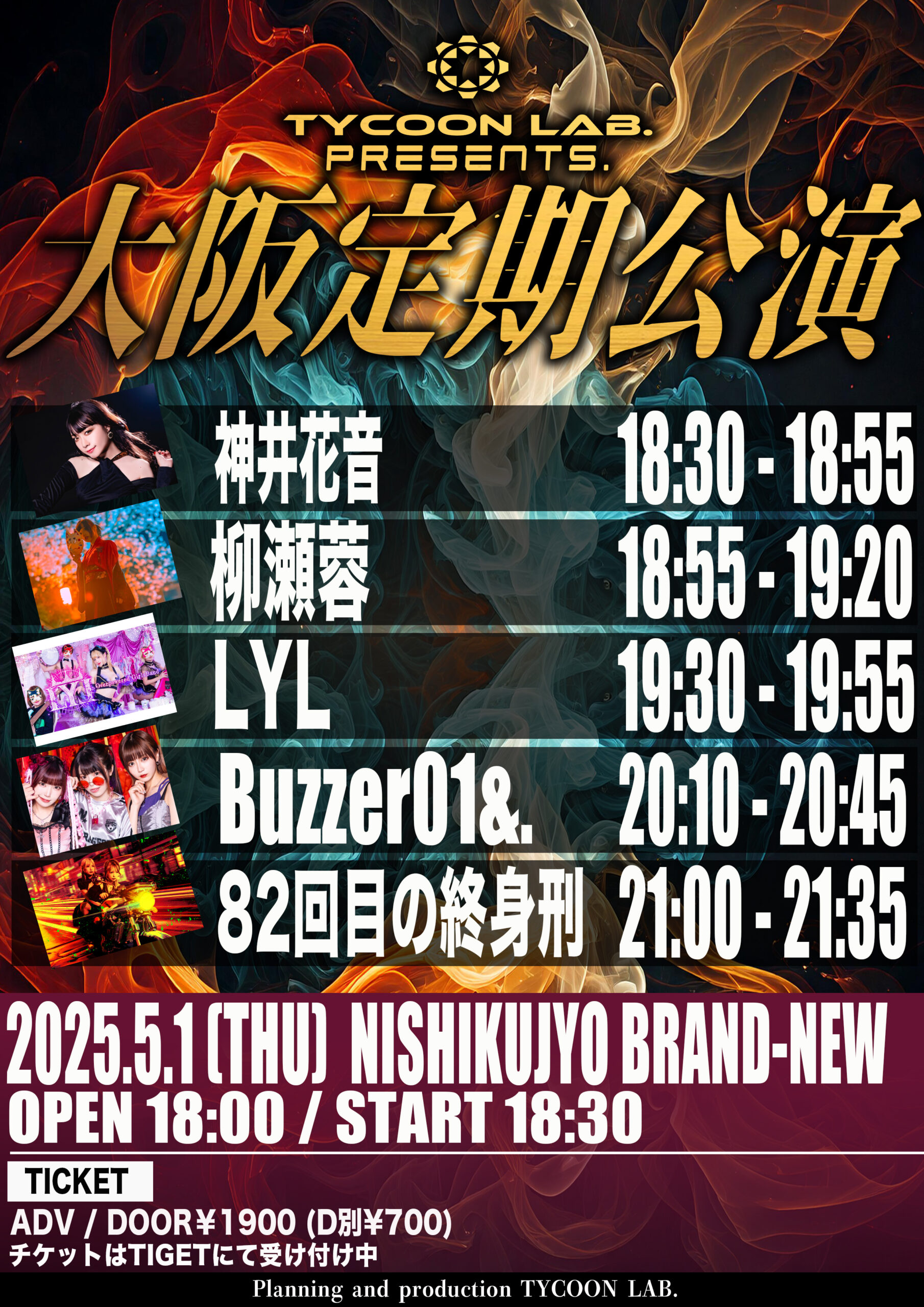 タイラボ定期 ●日程: 2025/5/1(木) 西九条BRAND-NEW TYCOON LAB.presents 大阪定期公演 【CAST】 ・Buzzer01&. ・82回目の終身刑 ・柳瀬蓉 ・LYL ・神井 […]