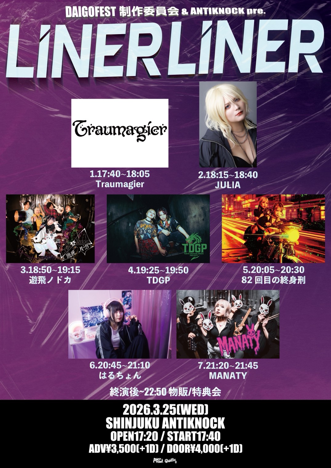 82刑出演!! 2026.3/25(水)@新宿ANTIKNOCK DAIGOFEST制作委員会 & ANTIKNOCK pre. 【LINER LINER】 ●ACT:MANATY / 遊飛ノドカ / TDGP […]