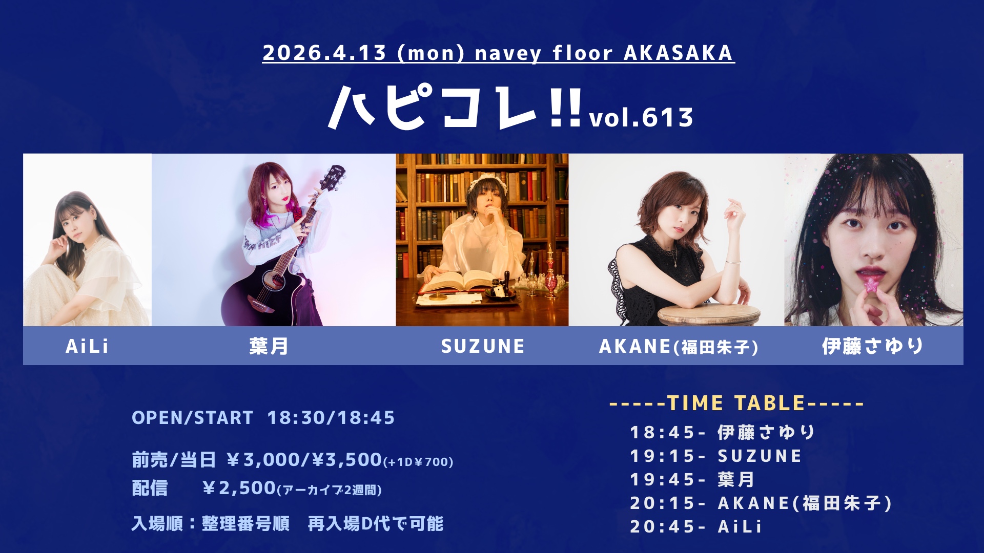 葉月が弾き語りにて出演!!!!!!!!!! 4/13(月) navey floor AKASAKA 『ハピコレ!!vol.613』 出演:AiLi / 葉月 / SUZUNE / AKANE(福田朱子) / 伊藤さゆり […]