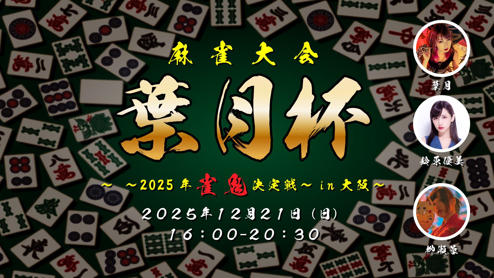 【12月21日(日)】麻雀大会 葉月杯 〜2025年雀鬼決定戦~in大阪 会場:大阪市内(ご参加の方にお知らせいたします) 時間:16:00〜20:30(4.5h) 料金:8,200円(席代込) ※昼の忘年会と通し予約→ […]