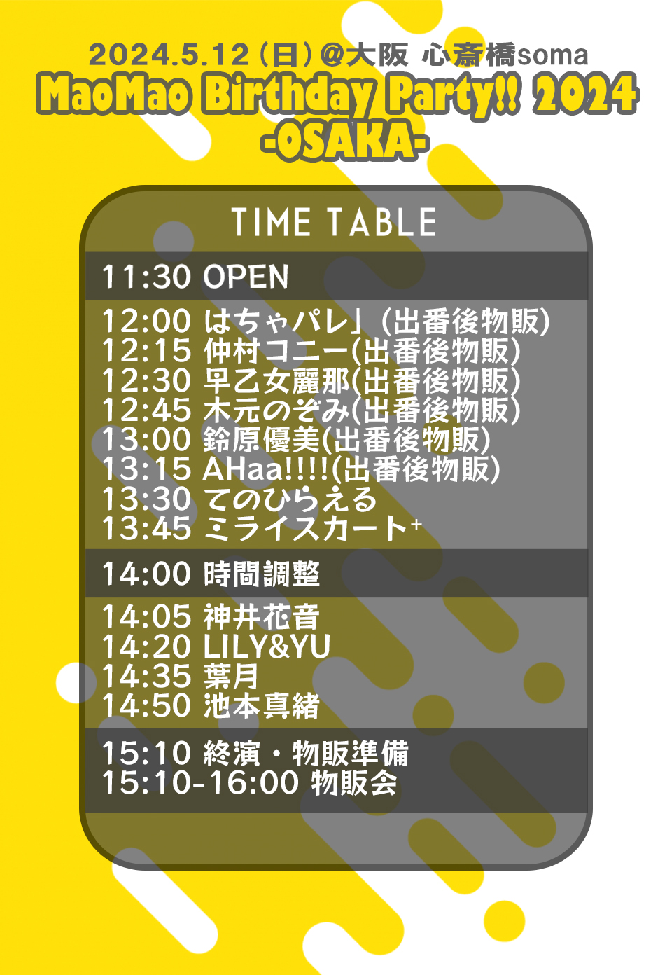 【05月12日(日)】「MAoMAo Birthday Party!!2024 -OSAKA-」心斎橋soma