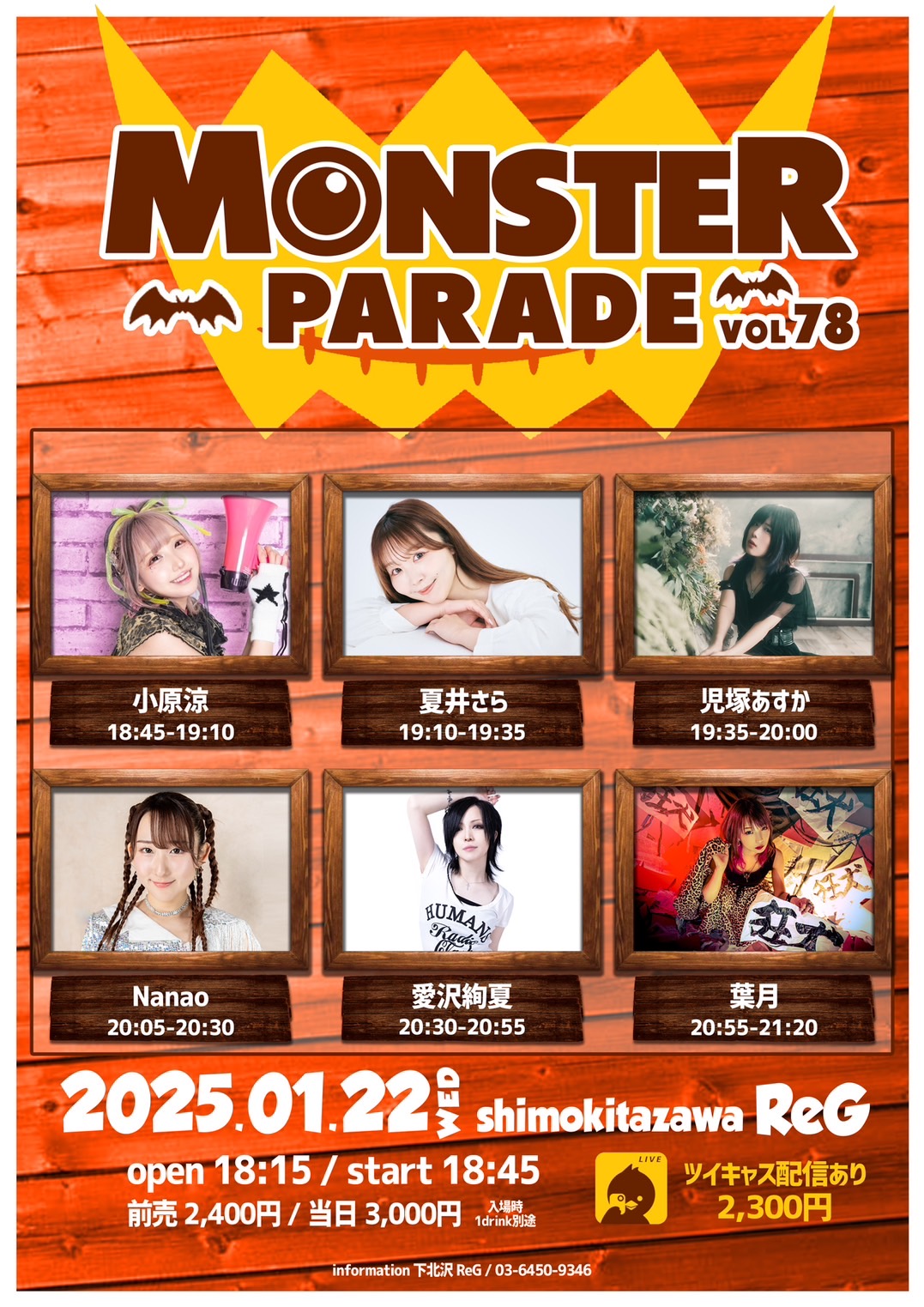 葉月出演!! このイベントには予約特典があります。 予約特典 【葉月】100HZK 紙幣の使い方・特典情報まとめはこちらhttps://shikisairecords-west.com/1885■01月22日(水) 下北沢 ReG 「MONSTER PARADE Vol,78」 【出演】愛沢絢夏(ASH FRAST) / 児塚あすか / 葉月 / 夏井さら / Nanao / 小原涼 【時間】開場 18:15 / 開演 18:45 【料金】前売 2,400円 / 当日 3,000円(+1D) 【入場順】整理番号順 ※整列は開場時間の5分前からになります、それまでは店舗付近に溜まらないようご協力お願いします。 【チケット】TIGET(12月13日 22:00~) https://tiget.net/events/366197 【配信】2,300円(※1週間アーカイブ視聴可能) https://twitcasting.tv/skz_reg/shopcart/348474 【問い合わせ】下北沢 ReG / 03-6450-9346