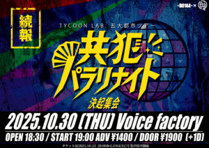 【10月30日(木)】TYCOON LAB. 五大都市ツアー 「共犯パラリナイト / 決起集会 」@下北沢Voice factory