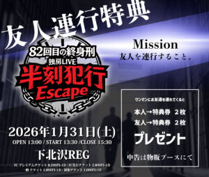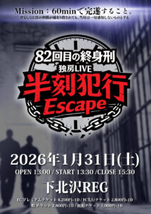 【01月31日(土)】82回目の終身刑 独房LIVE「半刻犯行Escape」@下北沢ReG
