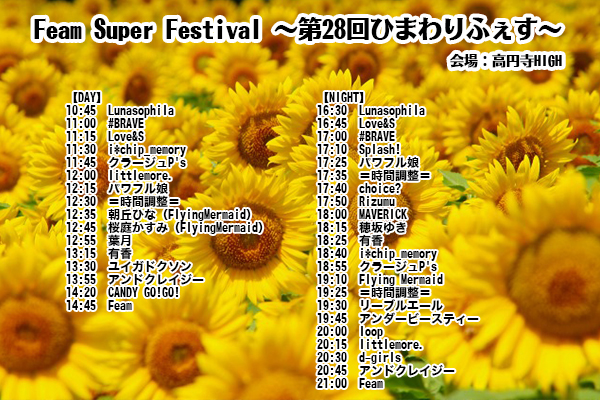 【7月18日(月・祝)】Feam Super Festival =DAY= ~第28回ひまわりふぇす~@高円寺HIGH